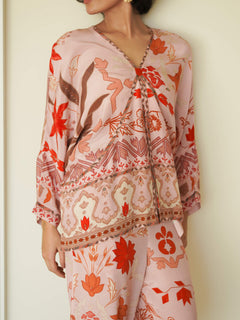 The Gypsy top boasts a flowy and airy design, creating a sense of effortless charm and comfort. It pairs seamlessly with its matching Ibo pant, offering a versatile ensemble with a touch of bohemian flare.